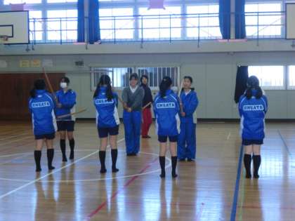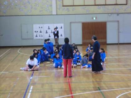 体育館で剣道の基礎練習です。