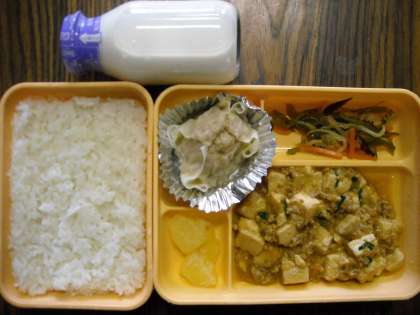 ごはん・マーボー豆腐・中華サラダジャンボ・焼売・果物