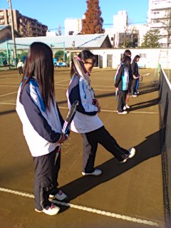 ソフトテニス部は男女で昭島市立昭和中学校に練習試合に来ています。女子は神奈川県の霧が丘中学校と男子は小金井緑中学校と試合です。