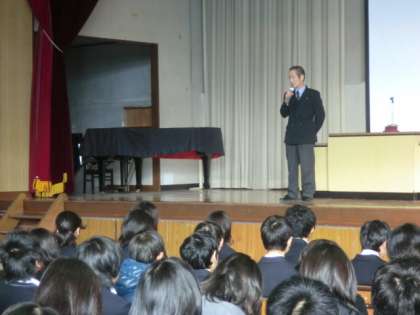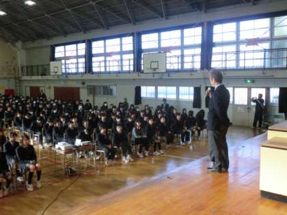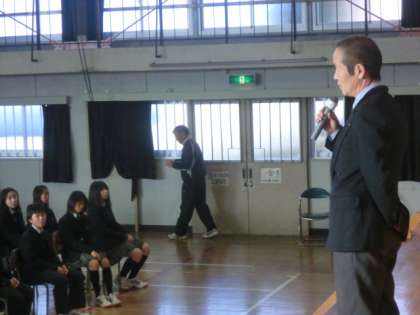 はじめに少年課の年岡さんから、冬休みに向けて犯罪被害と非行防止についての講話がありました。