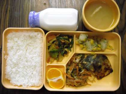 ごはん・魚のゆずみそ焼き・しらたきのチャプチェ・コーンポテト・