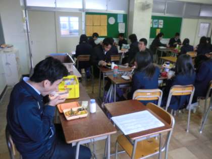 担任の齋藤先生とともに、今年最後の学校での昼食を食べました。
