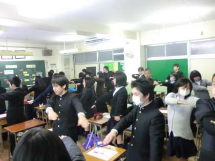 宮田先生の指導で、緊張と脱力を交互に行いました。