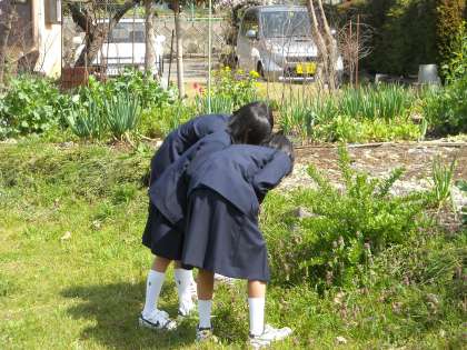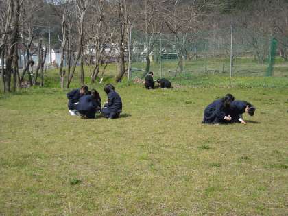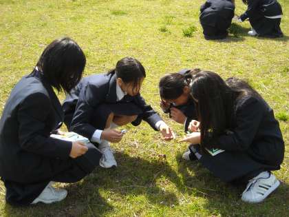 粕谷先生の話を聞いた後、三々五々、植物を探して教科書や資料集を見て名前を確認しました。