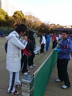 男子は有明テニスの森で開催されている、吉田久人杯関東選抜ソフトテニス研修大会に参加しています。予選リーグの最初の相手は埼玉3位の宮原中学校です。