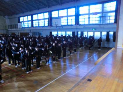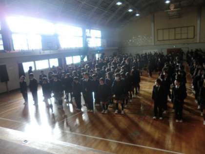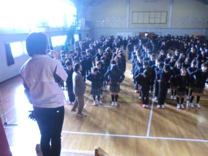 1時間目に体育館で行われました。