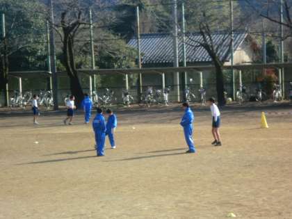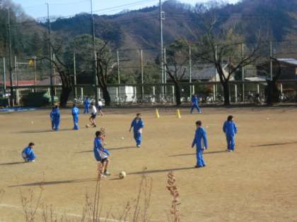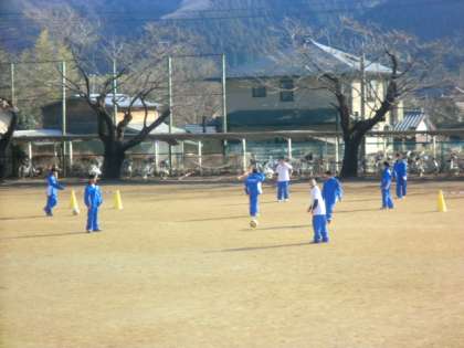 グラウンドでグループごとに行うミニサッカーの準備をしていました。