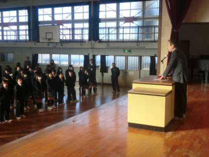 校長先生からは成人式についてと、3年生の受験に向けて健康管理と基礎の学習の大切さについてのお話がありました。