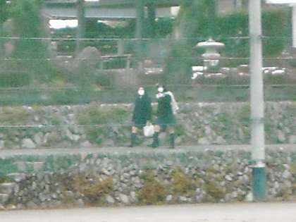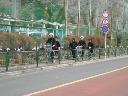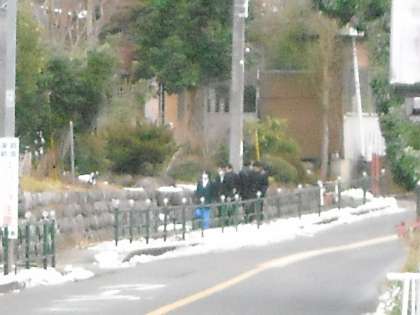 陣馬街道を歩いて皎月院側の門から入ってくる生徒と更に直進して正門まで来る生徒もいます。