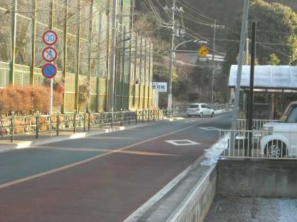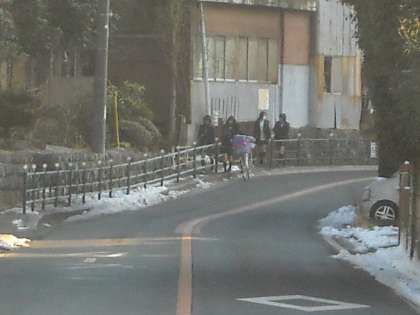 下からの徒歩の生徒は陣馬街道を直進して来る人も多いです。