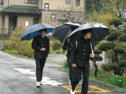 傘を持つ手もこごえそうですが、会話には熱が入っているようでした。