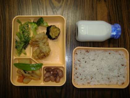 古代ごはん・鶏肉のみぞれがけ・野菜のおかか和え・新じゃがの煮付け・