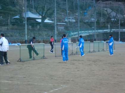 グラウンドがゆるむ前に練習です。