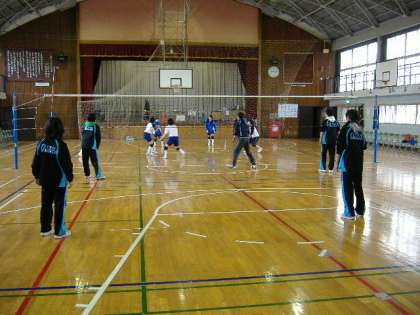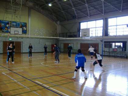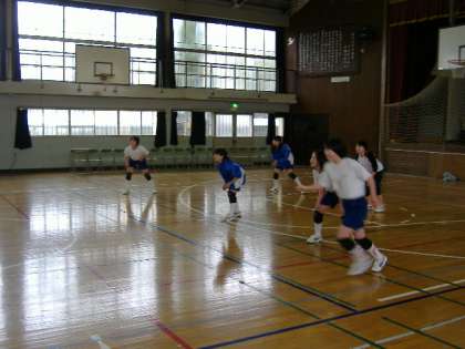 練習の仕上げでは、バスケットボール部の女子と練習試合です。