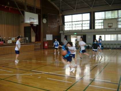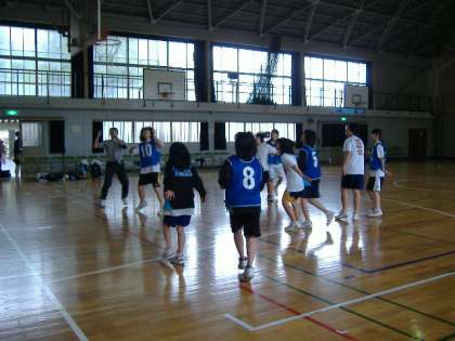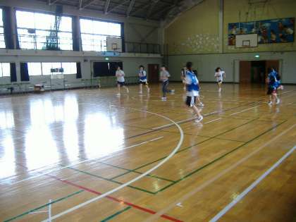 男子の公式戦が始まる前の時間を利用して、女子が練習をしました。