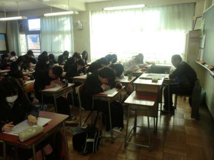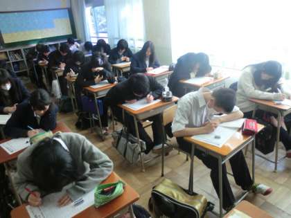 馬場先生の指導でプリントの問題を解いていました。