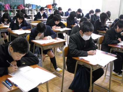 1時間目から国語基礎・国語応用・数学基礎・数学応用・意識調査と5時間掛けて行います。