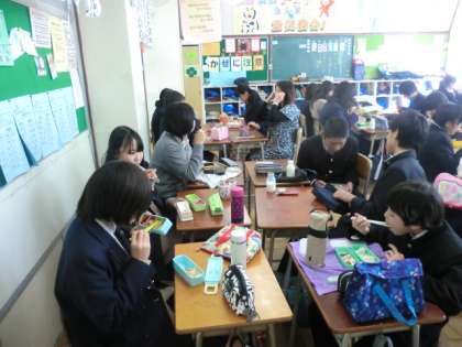東郷先生は生徒の席に座って食事を始めようとしていました。