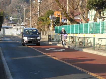 陣馬街道は交通量が多いので自転車走行には気を付けましょう!