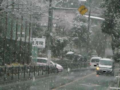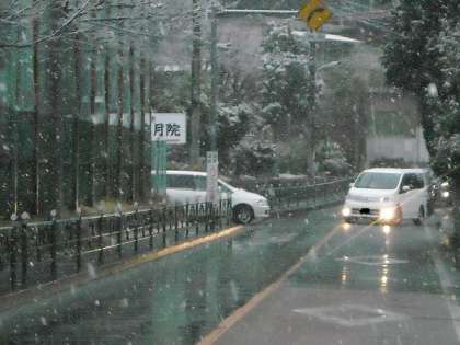 皎月院の入り口は送迎の車がひっきりなしです。