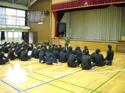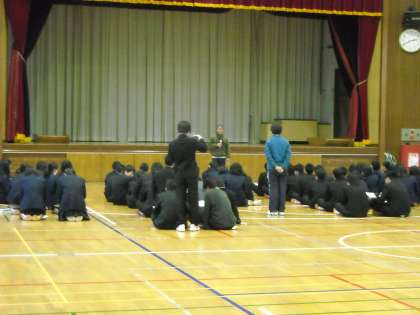 午後2時40分から体育館で、明日の都立高校第一次・分割前期受検出願のための、前日指導が行われました。