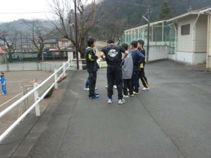 グラウンドが使えないので周回をランニングしていました。