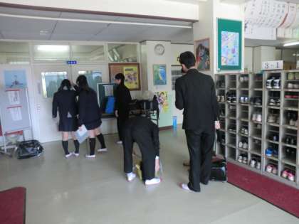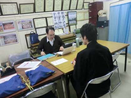 3年生で都立高校に出願が終わった生徒は、学校に戻ったらすぐに応接室で3年生の先生に報告をしました。
