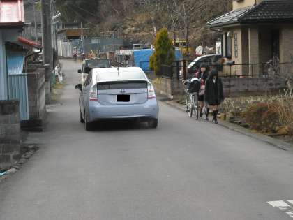 正門前の通りは意外と交通量が多いです。