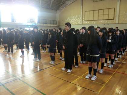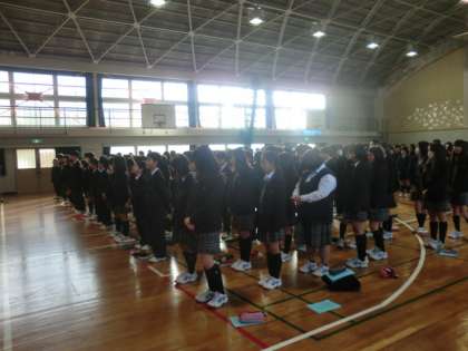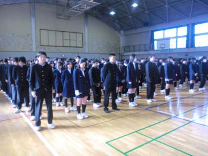 体育館は気温が低かったのですが、生徒はしっかりと話を聞いていました。