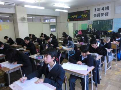 移動教室の関係で、今日から1年生だけ学年末テストが始まりました。