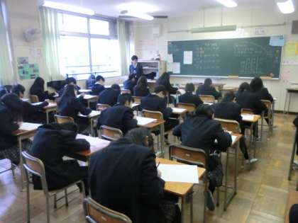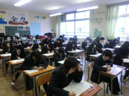 今日はチャイムではなく、教科ごとの時間で試験が進められました。