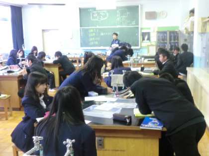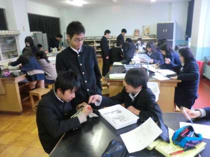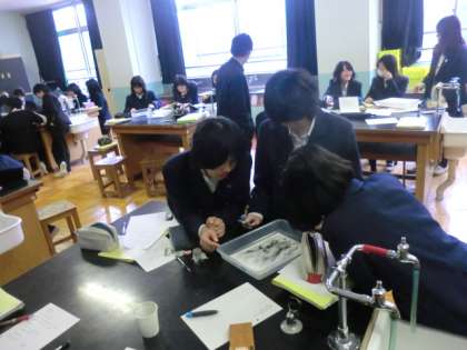 齋藤先生の指導で、砂鉄を使って磁場の実験をしていました。