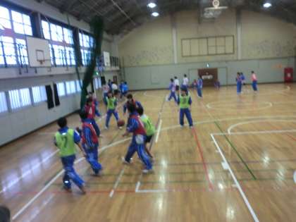 狩野先生の指導で、バスケットボールの試合をしていました。