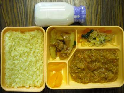 ターメリックライス・チリコンカン・チンゲン菜のサラダ・揚げじゃがのツナソース・