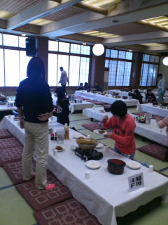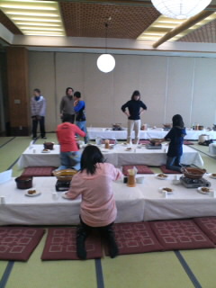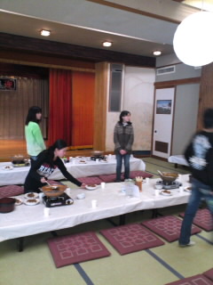 食事係が自分たちの班の食事の準備をします。