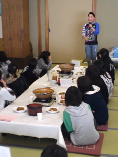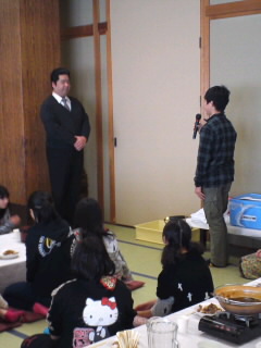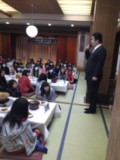 食事の前に宿舎の方からの挨拶と実行委員長からの挨拶がありました。その後、食事係のいただきますの号令で昼食の開始です。