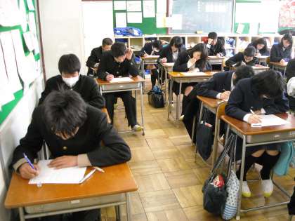 2年生は学年末試験の目前と言うこともあって、全クラスで国語の模擬問題に取り組んでいました。