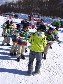 スキーもスポーツですから、準備体操で体を充分暖めてから滑り出しました。