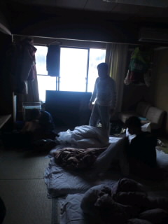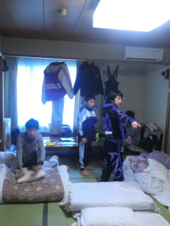 起きたら自分たちで布団を片付けます。