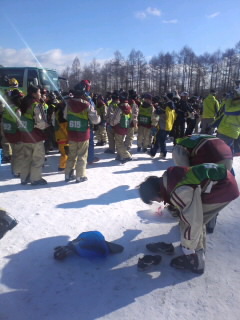 実習班ごとにゲレンデに向かいます。