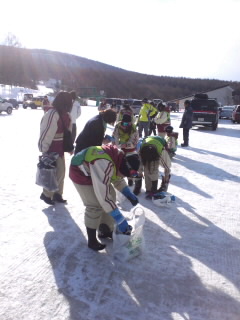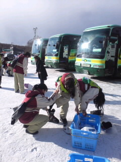 スキー靴を履き替えてバスに乗ります。