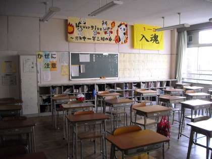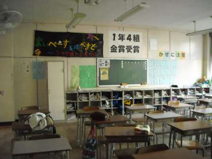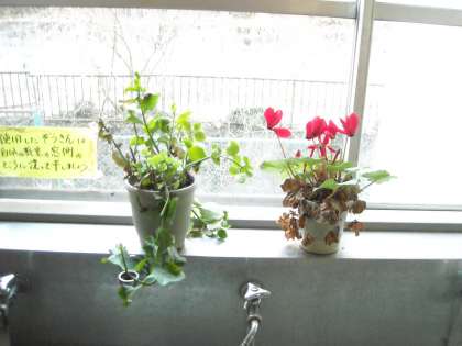 1年3・4組の教室です。廊下の花も春を待っています。