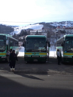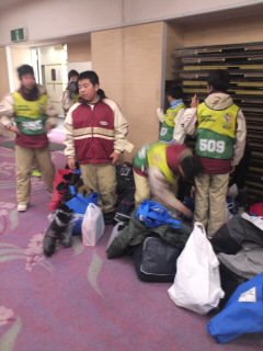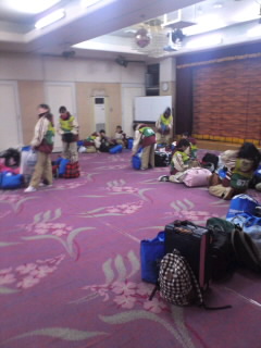 クラスごとに荷物を並べ終えたらバスに向かいます。