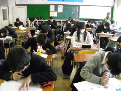 清水先生の社会の授業ですが、めいめいが試験対策に取り組んでいました。