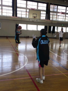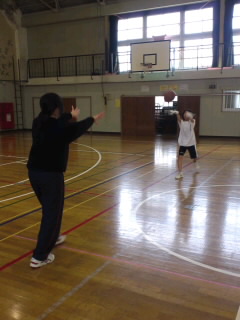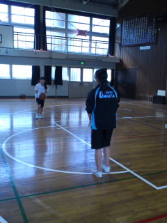 午後から体育館で練習です。顧問の奥山先生も一緒に、パスの基礎練習をしていました。