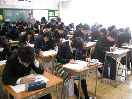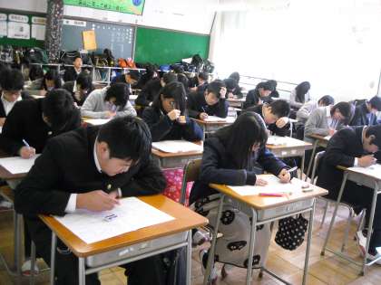 2時間目は理科のテストです。どのクラスも集中を切らさずに取り組んでいました。