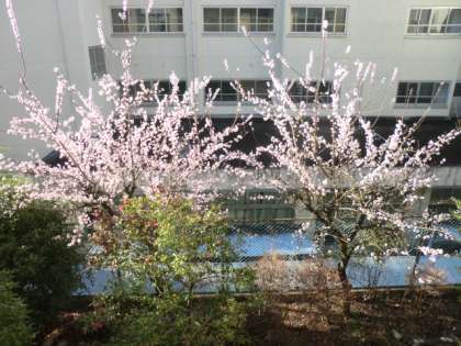 ウメやモモの花は満開です。サクラが少し開花したようです。