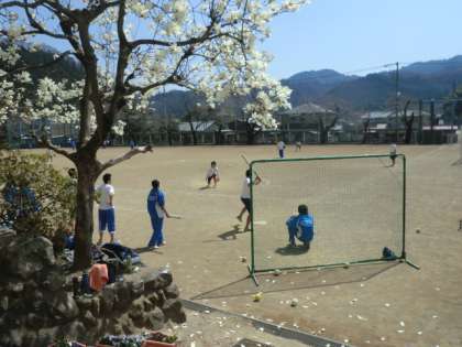 男子はグラウンドでソフトボールを行っていました。