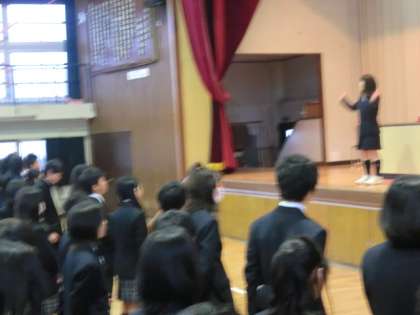 初めに吹奏楽部の伴奏で、校歌斉唱です。