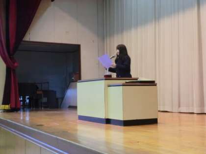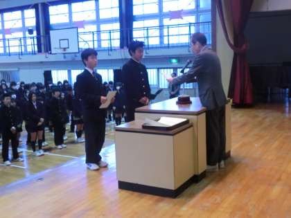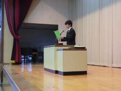 1.2年の代表生徒に、修了証の授与がありました。その後に学年の代表生徒の言葉です。